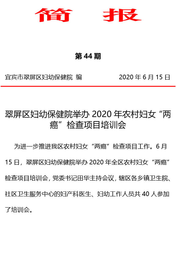 翠屏区妇幼保健院举办2020年农村妇女“两癌”检查项目培训会