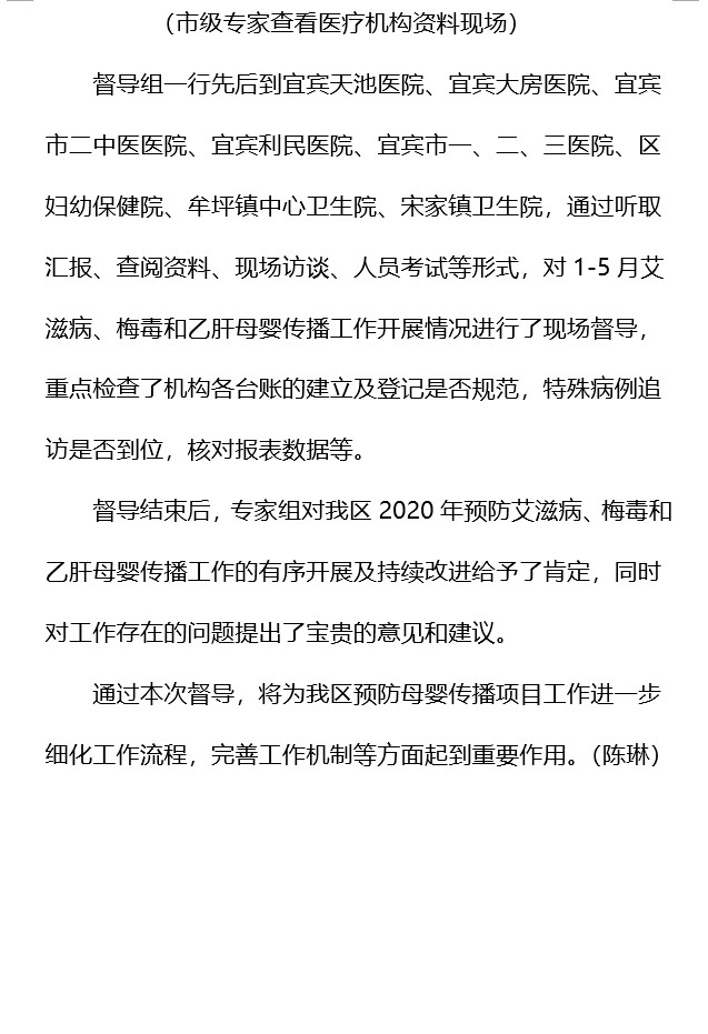 翠屏区预防艾滋病、梅毒和乙肝母婴传播工作接受市级督导