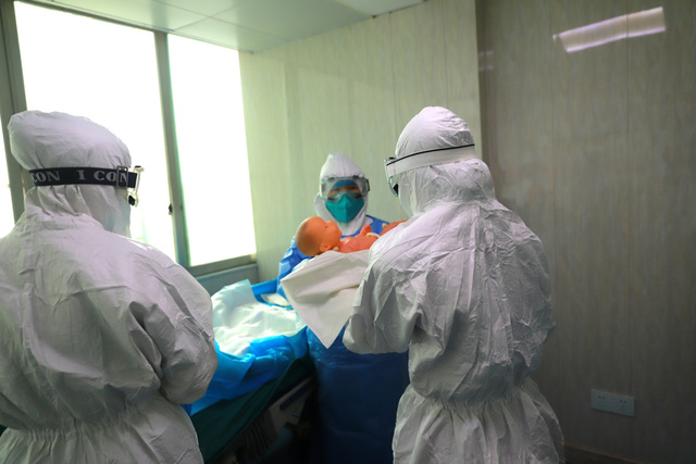 该演练由我院医务科组织并进行演练脚本编写,曹文君业务副院长担任应急处置演练领导小组组长,设医疗、护理、医院感染管理、检验、后勤人员组成的专家组,对整个演练过程进行专业督导,全程模拟了预检分诊、发热门诊、隔离产房、病员转运及终末消毒四个主要场景,重点考查我院医护人员对流行病学调查、新冠肺炎筛查(标本采集)、患者转运、院感防控(职业防护意识、防护用品穿脱、环境消毒等)、孕产妇急救(孕妇、新生儿救治)、会诊转诊、疫情报告等救治流程及环节的应急反应能力和医疗诊治效率。参演人员依照实战准备参与其中,严肃认真、紧张有序地完成了整个演练过程。