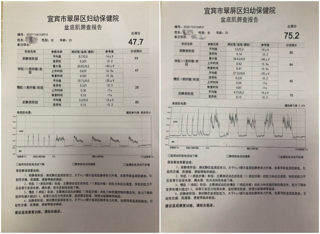 诊疗案例:顺产后42天,我院李姓产妇回医院复查盆底肌,主诉妊娠晚期咳嗽、打喷嚏会漏尿,感觉憋不住,只得频频地更换卫生护垫。开始产妇误以为是孕晚期正常现象,出了月子后会自愈。但事实上,满了产后42天,漏尿的情况并没有改善。经过我院盆底肌检测筛查报告显示,产妇盆底肌力因怀孕受损,盆底I类肌纤维及Ⅱ类肌纤维均有不同程度的肌力下降及收缩控制的稳定性能降低,进而引发孕晚期及分娩后不同程度漏尿。