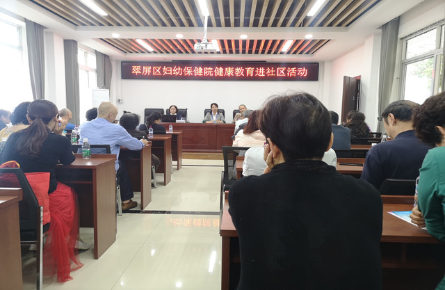 5月25日下午,翠屏区妇幼保健院一行2人随区妇联来到上江北三江社区,对50余名社区群众开展了健康教育讲座。