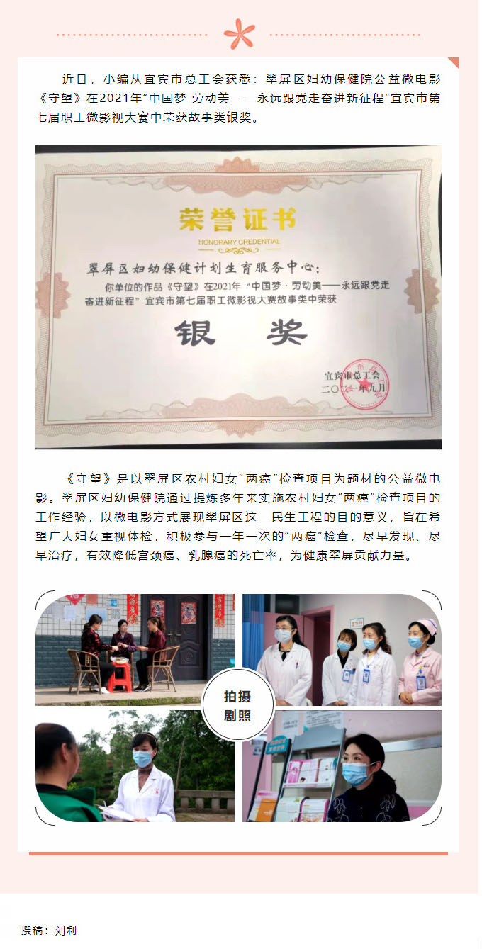翠屏区妇幼保健院公益微电影《守望》获银奖