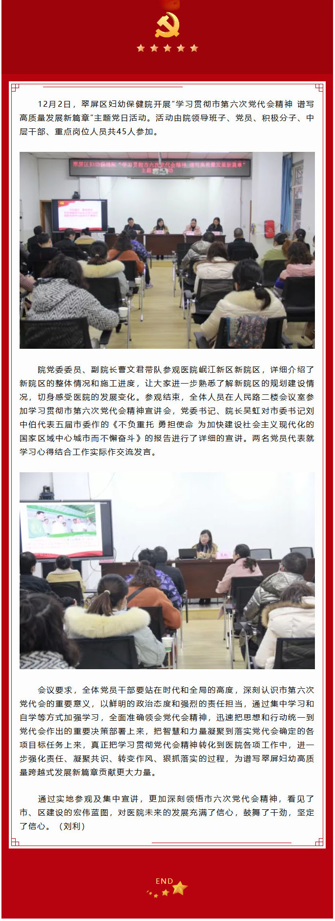 翠屏区妇幼保健院开展学习贯彻市第六次党代会精神主题党日活动