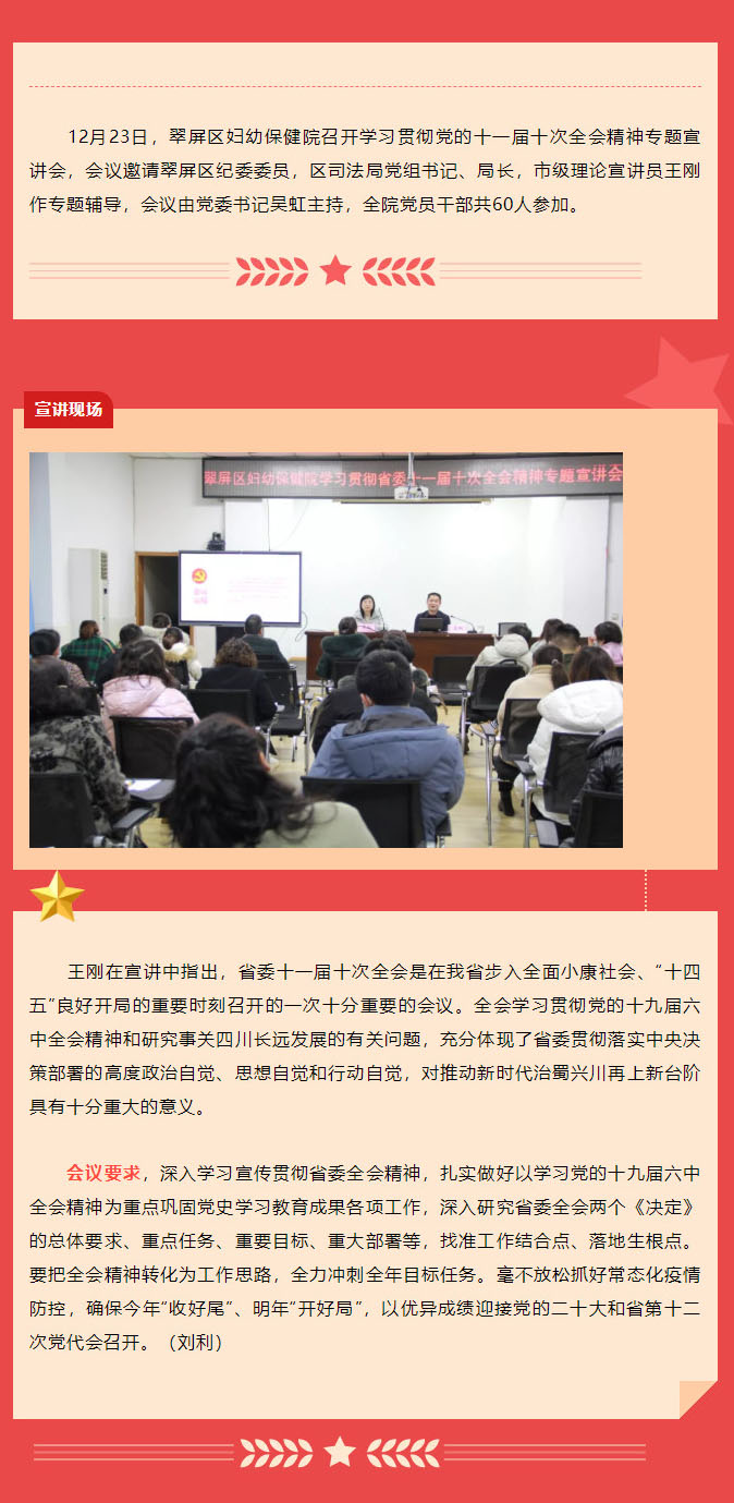 区妇幼保健院召开学习贯彻省委十一届十次全会精神专题宣讲会