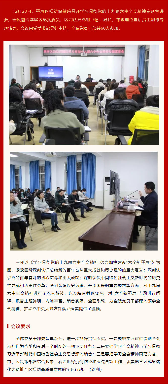 勇担新使命 展现新作为——区妇幼保健院学习贯彻党的十九届六中全会精神