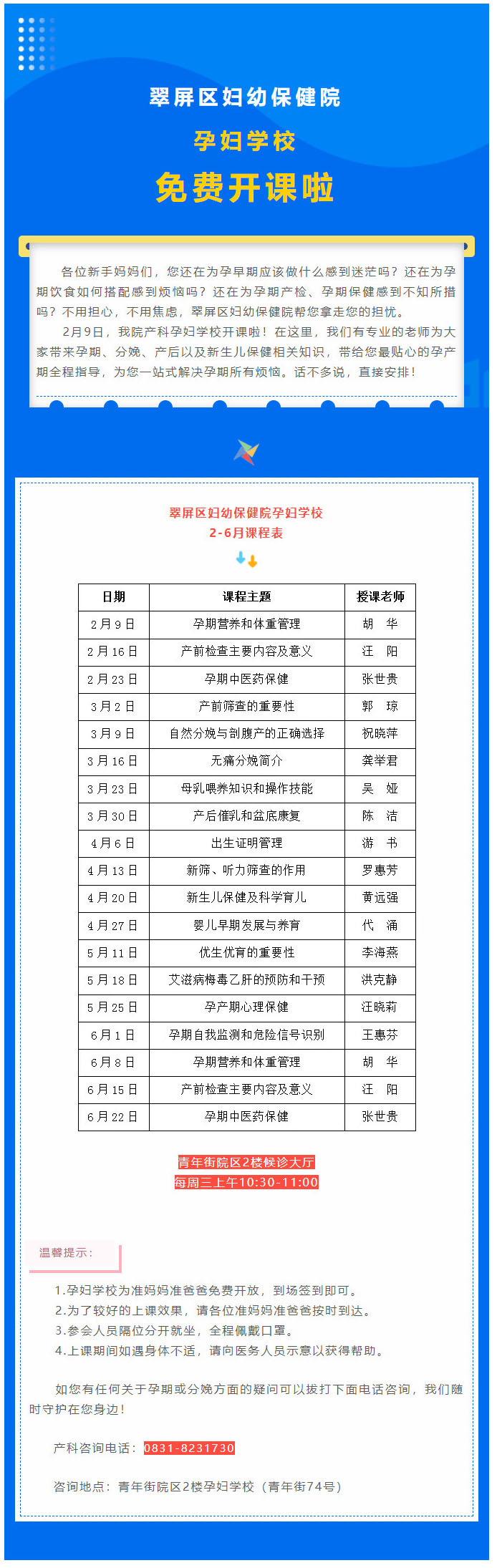 翠屏区妇幼保健院孕妇学校免费开课啦!