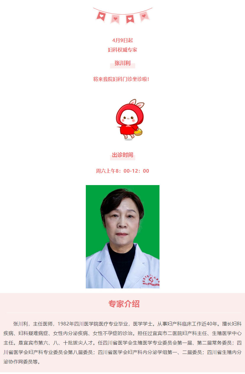 好消息!妇科权威专家张川利来我院坐诊啦!