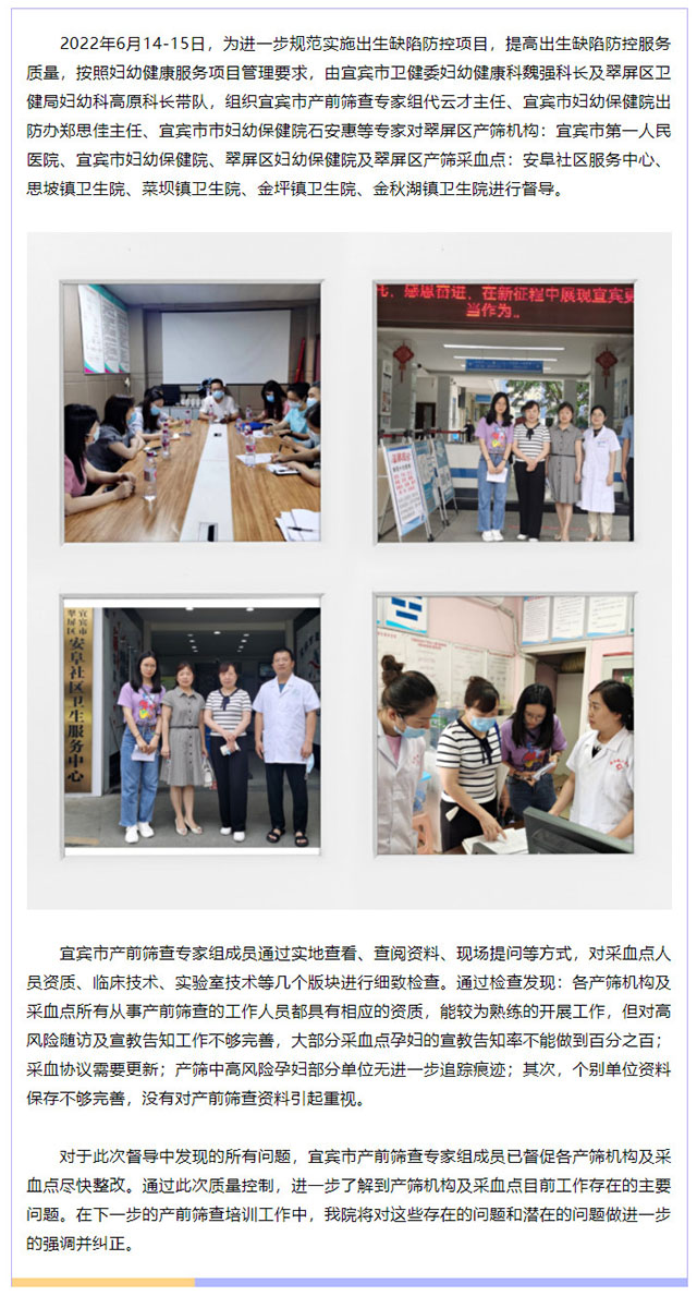 宜宾市卫生健康委出生缺陷防控项目综合督导