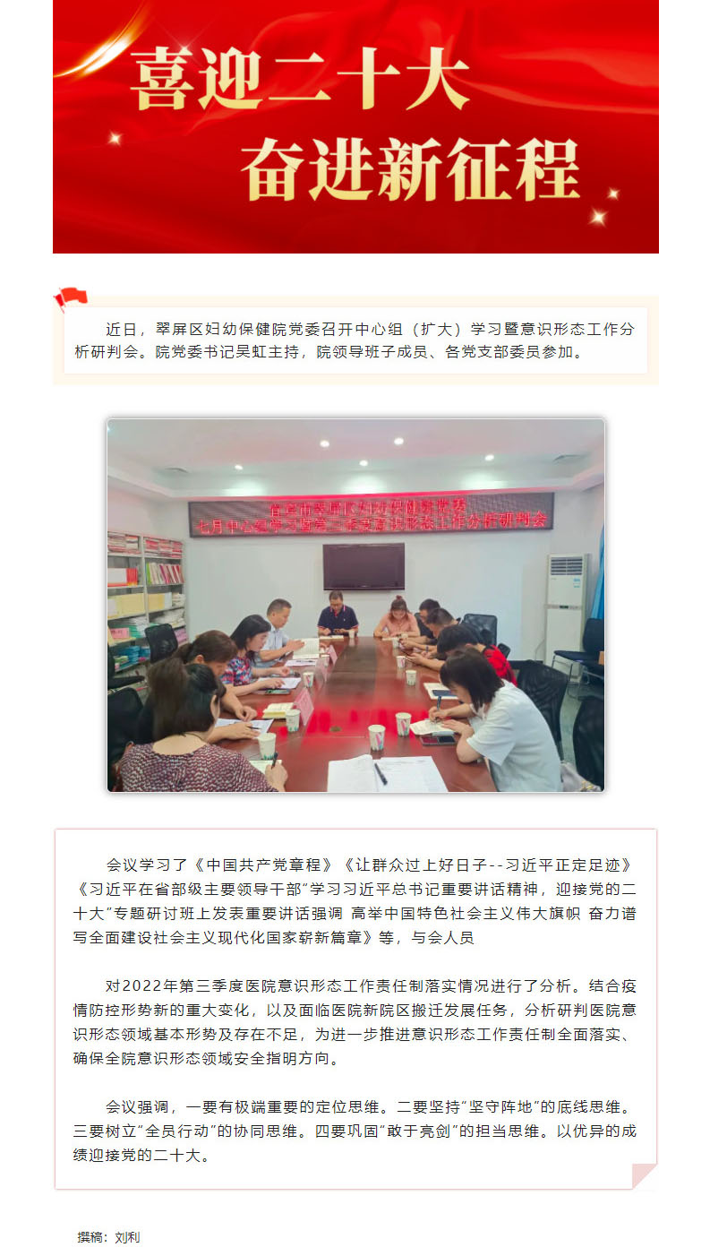 翠屏区妇幼保健院党委召开中心组(扩大)学习暨意识形态工作分析研判会