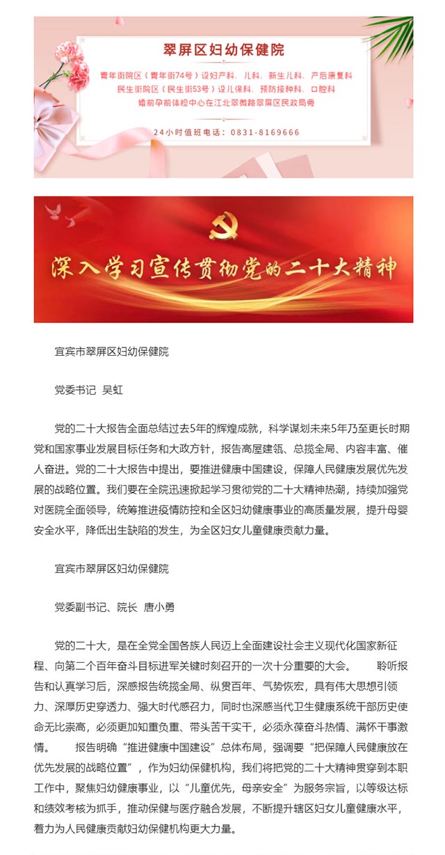 翠屏区妇幼保健院热议党的二十大报告精神(一)