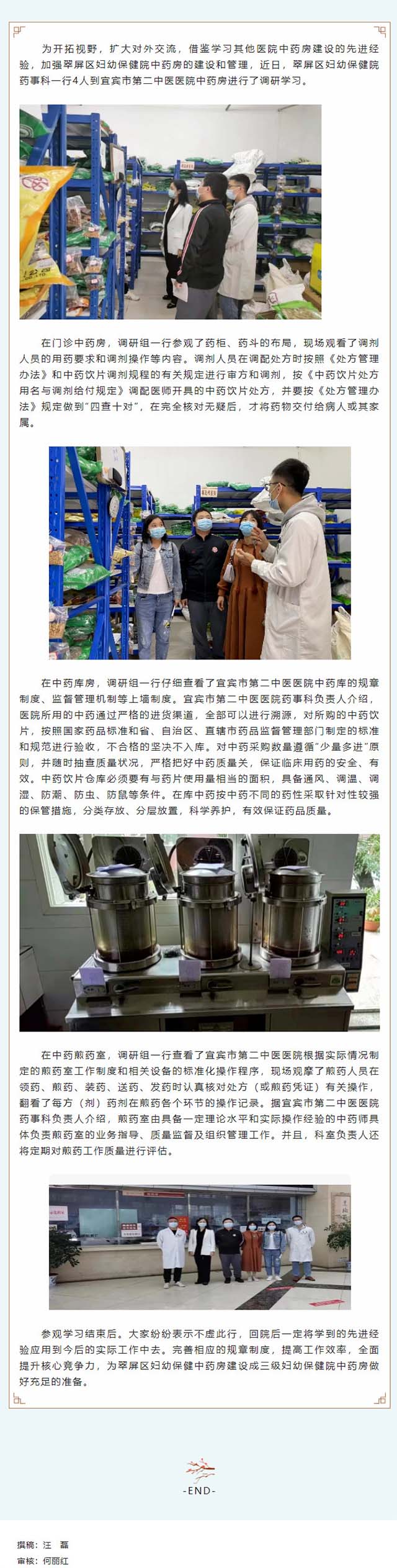 翠屏区妇幼保健院药事科到宜宾市第二中医医院中药房参观学习