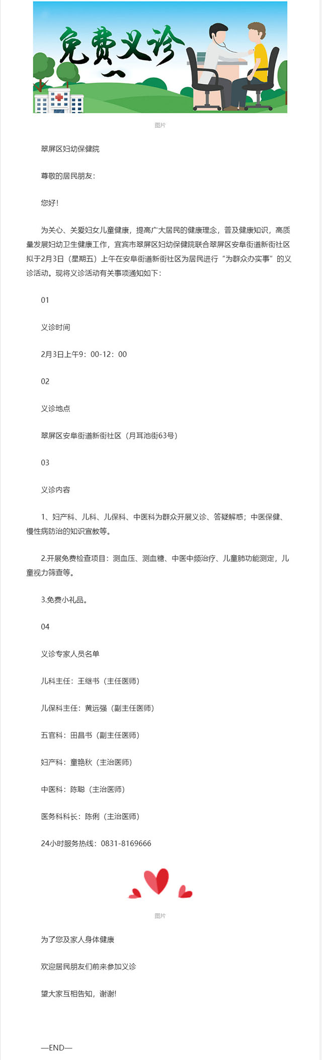 2月3日上午!翠屏区妇幼保健院义诊来啦!