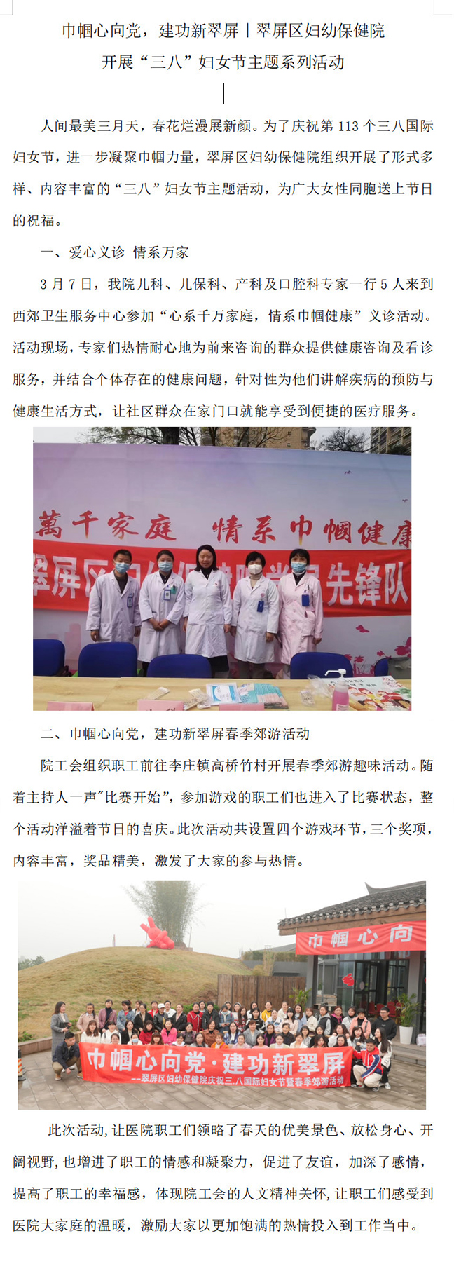 巾帼心向党,建功新翠屏|翠屏区妇幼保健院 开展“三八”妇女节主题系列活动