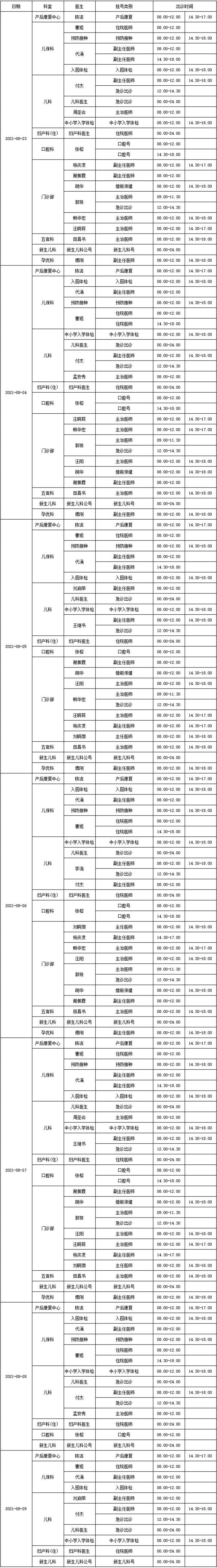 宜宾市翠屏区妇幼保健院2021年8月23日至29日出诊公告