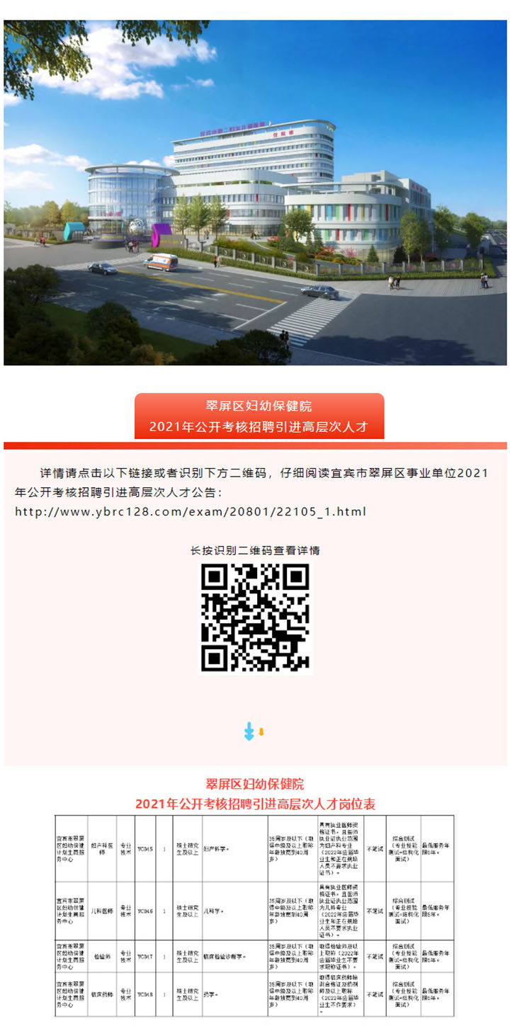 翠屏区妇幼保健院2021年公开考核招聘引进高层次人才信息