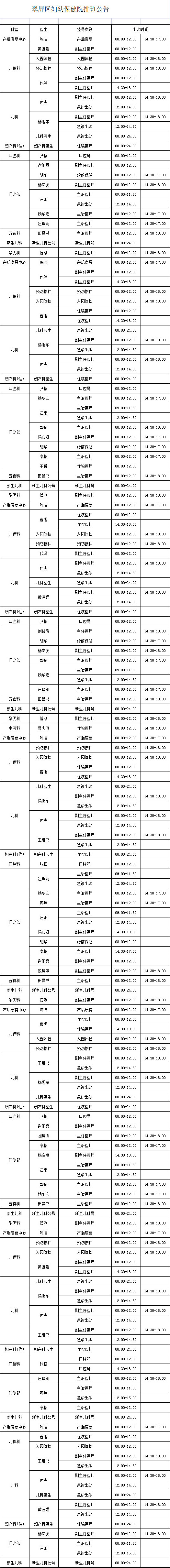 宜宾市翠屏区妇幼保健院2021年10月18日至10月24日出诊公告