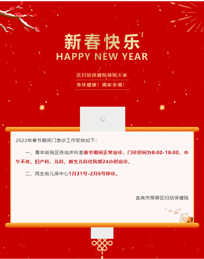 翠屏区妇幼保健院2022年春节门急诊工作安排
