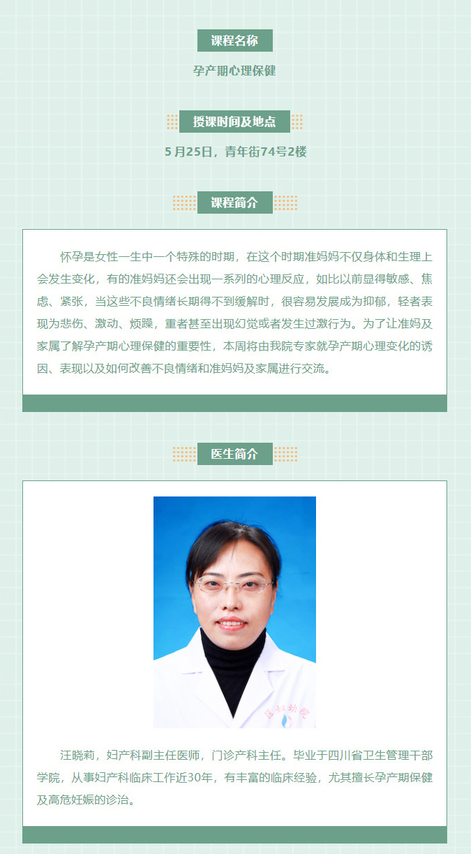上课啦!汪晓莉老师给你讲孕产期心理保健!