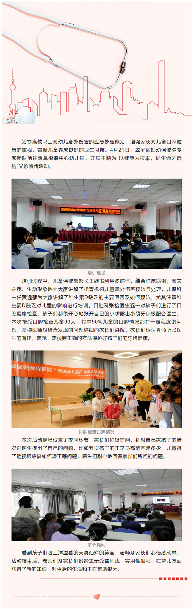 翠屏区妇幼保健院走进“幼儿园”健康讲座和义诊活动