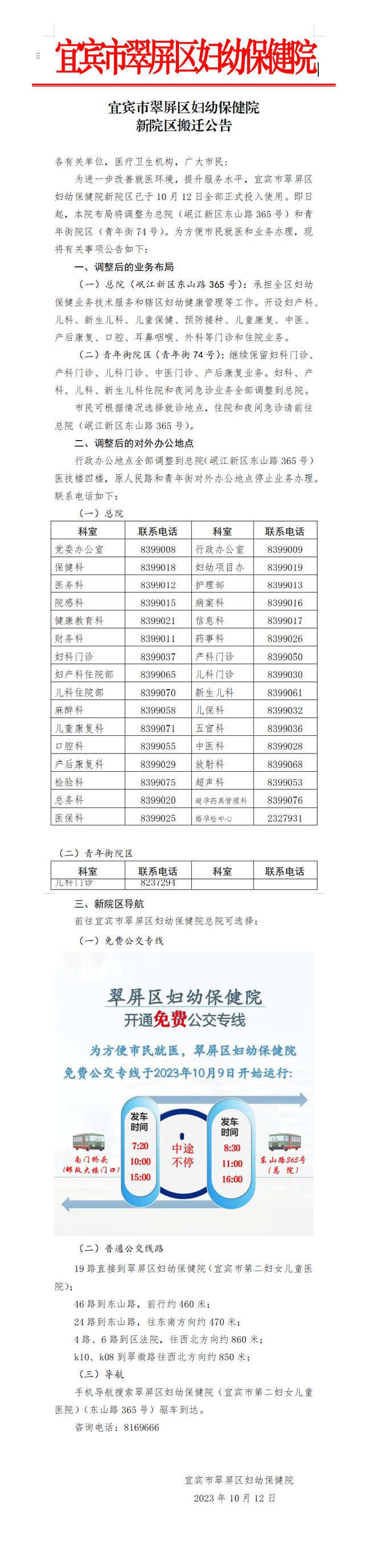 宜宾市翠屏区妇幼保健院 新院区搬迁公告